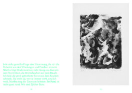 Alle Blätter eint ihre schwarze Monochromie und der Kontrastreichtum, der trotz der Einfarbigkeit durch das kontinuierliche Auftragen vieler Schichten und Feinheiten direkt auf den Druckstein entsteht. Trotz ihrer dunklen Beschaffenheit haben die Lithografien einen leichten, fast spielerischen Charakter, zeigen in ihrer Abfolge eine intensive Auseinandersetzung mit den Möglichkeiten des Materials, die Lust am Schaffensprozess und an der Arbeit. Durch die Vorgaben des Materials sind sie strukturgebend in manchmal unstrukturierten Zeiten, eben „something good“, wie Bilder von Delfinen in Venedig.